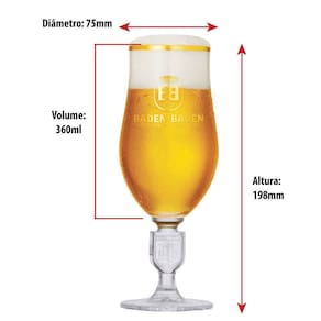 A exclusiva Taça de Cristal Baden Baden é a escolha perfeita para apreciar a sua cerveja favorita com todo o requinte e sofisticação que você merece. Com seu formato elegante de “tulipa”, essa taça é projetadas para realçar cada experiência de degustação, tornando-a versátil para os apreciadores de cerveja e chopp.
