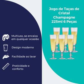 A Taça de Cristal Champagne 225ml é a escolha perfeita para brindar com sofisticação e elegância. Com capacidade de 225ml, ela foi projetada para realçar as características da sua bebida favorita, oferecendo uma experiência de degustação única.