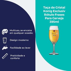 Para quem aprecia a sofisticação de uma boa cerveja, a Taça de Cristal Konig Exclusiv para cerveja 395ml é a escolha ideal. Seu design exclusivo, com rótulo de frases, não só enriquece a experiência de degustação, mas também adiciona um toque de estilo e personalidade à mesa.