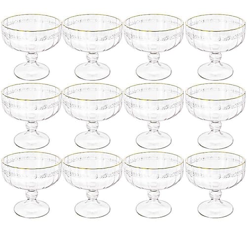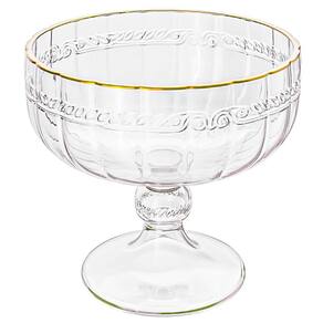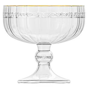 A taça para sobremesa da Lyor é fabricada em cristal, na cor tansparente com borda dourada, de grossa espessura para garantir a durabilidade e qualidade do produto. As taças possuem 200mL de capacidade, 9,2cm de altura e 10cm de diâmetro.