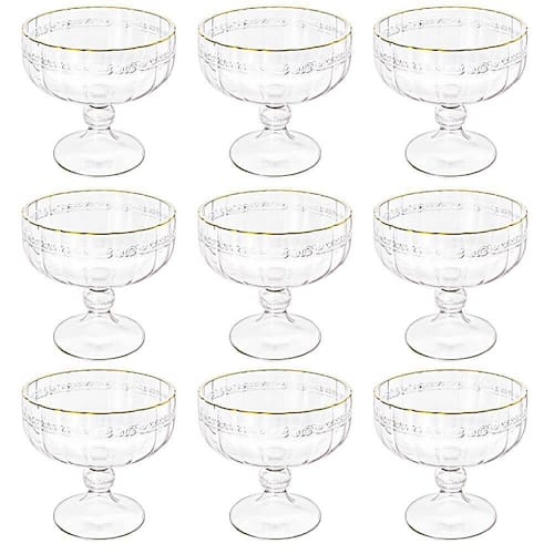 A taça para sobremesa da Lyor é fabricada em cristal, na cor tansparente com borda dourada, de grossa espessura para garantir a durabilidade e qualidade do produto. As taças possuem 200mL de capacidade, 9,2cm de altura e 10cm de diâmetro.