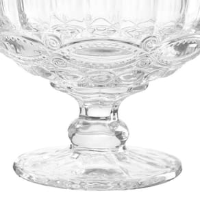 A Taça de Sobremesa Infinity é confeccionada em vidro transparente, possui pé de apoio. É uma taça cheia de detalhes em alto relevo. Atribui beleza à mesa-posta, é ideal para servir diversos tipos de sobremesas após as principais refeições.