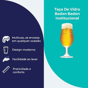 A exclusiva Taça de Cristal Baden Baden é a escolha perfeita para apreciar a sua cerveja favorita com todo o requinte e sofisticação que você merece.