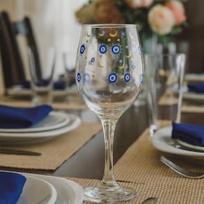 Taça de Vidro Grande 490ml Vinho Água Olho Grego Taça Vidro Vinho/Água Decoração Artesanal Olho grego 490 ml - Nadir Figueiredo Produzida em vidro de alta qualidade, com acabamento impecável, une beleza e elegância para valorizar a sua mesa. A taça é pintada de forma industrial e pode ser lavada normalmente sem causar nenhum dano à peça. Características do produto: Produto: Taça / Cálice Indicação: Vinho, Água, Champagne, licor e todas as demais bebidas a gosto Material: Vidro Capacidade: 490 ml pode variar conforme modelo Altura: 15cm aproximadamente Cor: Transparente, decoração olho grego Diferenciais: Design elegante e resistente Acabamento que valoriza a decoração da sua mesa Como usar: Em celebrações, festas e presentes, Refeições Envio e : Embalagem reforçada para evitar danos durante o transporte Atendimento: Dúvidas Nossa equipe está pronta para responder no campo de perguntas Garanta agora sua taça e receba um item de qualidade Visite a nossa loja para conhecer toda a nossa de linha de taças, copos de vela, esculturas, pedras naturais entre vários outros itens de decoração feitos com muito carinho e respeito. Marca: Não Informado Ean: 7894438071106
