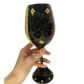 Taça de Vidro Pomba Gira Preta e Dourada 490 ml Taça de Vidro Pomba Gira Preta e Dourada - 490 ml Com design sofisticado e simbólico, a Taça de Vidro Pomba Gira Preta e Dourada é ideal para oferendas, trabalhos espirituais, altares ou decoração ritualística. Feita em vidro resistente, possui acabamento elegante nas cores preta e dourada, que remetem à força, sensualidade e poder da Pomba Gira.