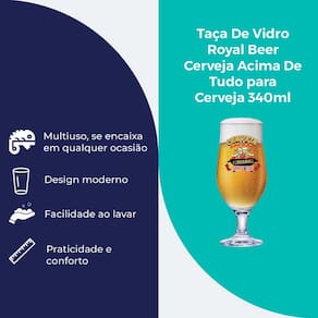 Com um design moderno e sofisticado, a Taça de Vidro Royal Beer Cerveja Acima De Tudo 340ml é perfeita para quem aprecia momentos especiais com uma boa cerveja. Sua capacidade ideal e o toque elegante de seu formato valorizam a bebida, intensificando seus aromas e sabores.