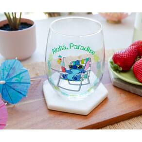Silver Buffalo Copo de vinho sem haste Disney Lilo and Stitch Tropical Relaxante Aloha Paradise, 590 ml