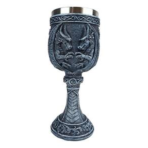 Taça dois Dragões Game Of Thrones 3D Azul Medieval em Aço Inox e Resina - 180ml