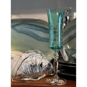 Taca para champanhe Grace lapidada em cristal ecologico 190ml A25cm cor verde gris Sobre a Bohemia A região da Bohemia, na República Tcheca, é reconhecida como a mais tradicional fabricante de vidros e cristais do mundo. Os primeiros registros de produção datam do século 10. Atravessando os séculos a região se perpetuou como produtora de cristais e deu nome à marca Bohemia, cuja produção acontece em diversas fábricas locais. Atualmente presente em mais de 100 países o cristal Bohemia figura entre os principais itens de luxo do mercado mundial, com um vasto portfólio para decoração e para a mesa posta. Itens indispensáveis para quem aprecia uma boa bebida e para quem ama a alta decoração.
