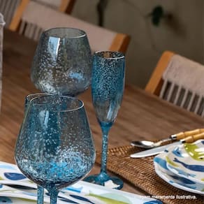 Taça para Vinho Acrílico Detalhes Bolhas Azul 680ml 50213 - EntreCasa - Dorémi Casa e Decor