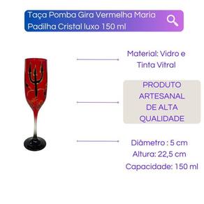 Taça Pomba Gira Cristal Luxo Vidro 150 ml - Escolha o Modelo Cor: Vermelha Padilha 150 ml Taça Pomba Gira Cristal Luxo Vidro 150 ml ou 180 ml - Escolha o Modelo e Tamanho