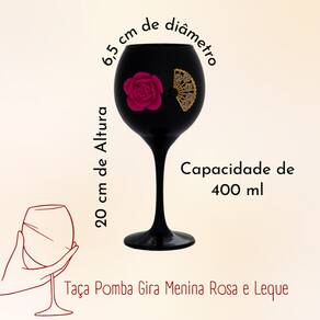Taça Preta Pomba Gira Menina Rosa e Leque 400ml 20cm Celebra