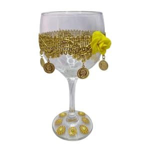 Taça Royal Cigana Amarela Flor Medalhas Vidro Taça Royal Cigana Amarela Flor Medalhas Vidro