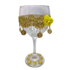 Taça Royal Cigana Amarela Flor Medalhas Vidro