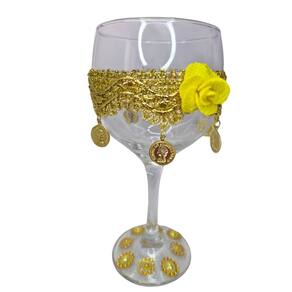 Taça Royal Cigana Amarela Flor Medalhas Vidro