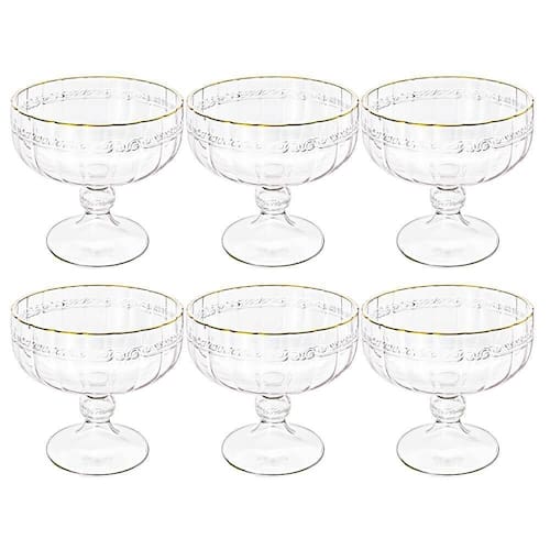 A taça para sobremesa da Lyor é fabricada em cristal, na cor tansparente com borda dourada, de grossa espessura para garantir a durabilidade e qualidade do produto. As taças possuem 200mL de capacidade, 9,2cm de altura e 10cm de diâmetro.
