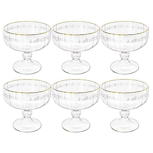 A taça para sobremesa da Lyor é fabricada em cristal, na cor tansparente com borda dourada, de grossa espessura para garantir a durabilidade e qualidade do produto. As taças possuem 200mL de capacidade, 9,2cm de altura e 10cm de diâmetro.