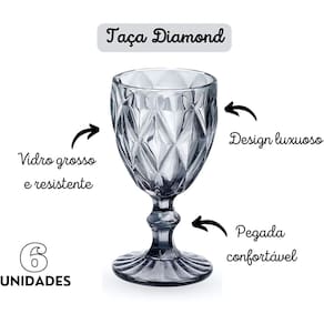 Taça Vidro Diamante 340ml Copo Água Suco Quality Home Apresentamos a Taça de Vidro Diamante 340ml da Quality Home, um item essencial para quem busca sofisticação e funcionalidade em suas refeições e eventos. Com seu design único em formato de diamante, essa taça eleva a apresentação de qualquer bebida, seja água, suco, vinho ou coquetéis, proporcionando uma experiência diferenciada para você e seus convidados. Feita de vidro ultra resistente, essa taça é durável e fácil de limpar, ideal tanto para ocasiões especiais quanto para o uso diário. Sua elegância natural torna-a uma peça de destaque na composição de mesas, sendo fácil de combinar com outros utensílios, agregando valor à decoração. Diferenciais do produto: - Design sofisticado: O formato de diamante adiciona um toque de elegância e charme à sua mesa. - Versatilidade: Perfeita para servir uma ampla variedade de bebidas, desde água e sucos até vinhos e coquetéis. - Durabilidade: Fabricada em vidro de alta resistência, garantindo maior durabilidade e facilidade na limpeza. Especificações técnicas: - Capacidade: 340ml - Peso aproximado: 350g - Dimensões aproximadas: 10cm  comprimento  x 10cm  largura  x 17cm  altura  - Material: Vidro - do vendedor: 3 meses contra defeitos de fabricação 1. A taça é resistente a choques térmicos Embora seja feita de vidro resistente, recomenda-se evitar mudanças bruscas de temperatura para prolongar a vida útil da taça. 2. É adequada para lava-louças Sim, a Taça de Vidro Diamante 340ml é fácil de limpar e pode ser colocada na lava-louças. 3. Posso utilizá-la para qualquer tipo de bebida Sim, sua versatilidade permite servir uma ampla ampla variedade de bebidas, desde água e sucos até vinhos e coquetéis. 4. Qual o diferencial desta taça em relação a outras O design em formato de diamante não só oferece elegância, mas também um diferencial estético que valoriza a apresentação da bebida. 5. O produto tem Sim, nossos produtos possuem . O período de varia de acordo com o fabricante e o tipo de produto. Consulte a descrição do produto para mais informações. 6. O produto é novo ou Utilizado 7. Posso rastrear meu pedido Sim, após a confirmação da compra,a própria plataforma fornecerá todos os dados de rastreamento para acompanhar a entrega do seu pedido. 8. Posso retirar o produto em algum lugar Atualmente, não oferecemos a opção de retirada em local físico. Todos os nossos produtos são entregues diretamente na sua casa. Com a Taça de Vidro Diamante 340ml da Quality Home, você garante a combinação perfeita entre estilo, funcionalidade e durabilidade, tornando cada momento à mesa ainda mais especial.