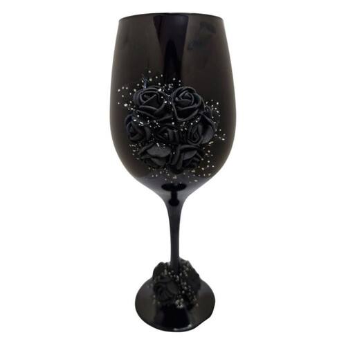 Taça Vidro Preta Pomba Gira Rosas Pretas 490 ml + Presente Adquira esta Taça maravilhosa e ganhe um lindo presente.