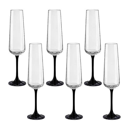 Taça de cristal bohemia champanhe 200ml preta sandra 6 peças