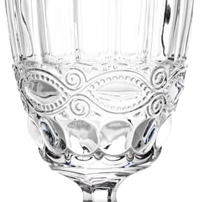 Conjunto de Taças de Vidro 360ml 6 peças Madrid Transparente - CasambienteO conjunto de taças Madrid possui design moderno e sofisticado, com desenhos em relevo no vidro que se assemelham as decorações da realeza, para você servir deliciosas bebidas com requinte e bom gosto.O kit de taças Madrid da Casambiente 6 peças é produzido em vidro espesso de ótima qualidade e resistência, que garante uma ótima durabilidade ao jogo e ajuda a manter a temperatura de sua bebida. As taças são transparentes, e possuem 360ml de capacidade, são ideais para água, suco e refrigerante durante um jantar. As taças podem ser utilizadas na decoração de sua mesa posta, cristaleira, ou somente para dar um toque especial em sua cozinha ou sala de jantar.Dimensões:Altura: 16,7cmDiâmetro: 8,5cmCapacidade: 360mLCaracterísticas:Marca: CasambienteReferência: TCVI102Modelo: MadridMaterial: VidroCor: TransparenteQuantidade: 6 peçasImagens ilustrativas.