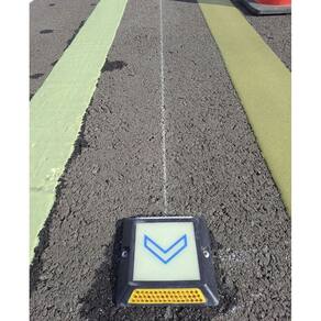 Tachadura de estrada autoluminescente e refletora, que brilha no escuro e reflete a luz, guiando pedestres e alertando.