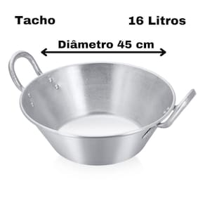 Tacho de Alumínio para frituras Linha Hotel 45 cm 16 Litros Tacho de Alumínio para frituras Linha Hotel 45 cm 16 Litros Para complementar a sua cozinha, com utensílios de alta qualidade, invista em um Tacho de alumínio; Qualidade e mais charme para a sua cozinha; É um Lindo e resistente Tacho na composição em alumínio. Tudo para lhe auxiliar no preparo das mais diversas receitas; O cozimento é rápido e uniforme, mantem o alimentos aquecidos por muito mais tempo após o preparo. Dimensões do Tacho de Alumínio para frituras Linha Hotel 45 cm 16 Litros Tacho: Altura 16 cm x Largura de uma alça a outra 56 cm x Diâmetro 45 cm x Espessura 1 cm x 16 Litros Embalagem: Altura 19 cm x Largura 48 cm x Comprimento 58 cm Peso: 1.100kg Informações Gerais: Marca: Aluminio Nacioanl Composição: Alumínio Tacho de 45 cm Capacidade: 16 Litros