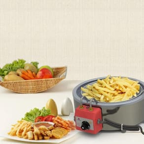 BENEFÍCIOS E DIFERENCIAIS - Estrutura em aço inox - Resistência em aço inox - Termostato para controle de temperatura automático - Área de fritura diametro de 400mm