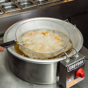 Tacho Fritador Elétrico 7 Litros TFSL Croydon. Ideal para lanchonetes, padarias, restaurantes, bares, food trucks e similares. Indicado para frituras em geral como pastéis, batatas, salgadinhos, acarajé e similares, com crocância e economia. Estrutura robusta com gabinete em aço inox, cuba em alumínio de chapa grossa e cesta de arame estanhado. Termostato regulável e lâmpada piloto indicadora. CAPACIDADE DE ÓLEO: 7L. PRODUÇÃO MÁXIMA: 24kg/h. POTÊNCIA: 3000W. CORRENTE: 13,6A. CONSUMO: 1,5kWh. PESO: 7,0kg. DIMENSÕES(CxAxL): 62x22x49cm. Tacho Fritador Elétrico 7 Litros TFSL Croydon é na Atau.