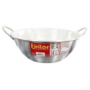 Especificação Técnica: Tipo Panela: Tacho Comprimento: 52 cm Diâmetro: 40 cm Altura: 14 cm Volume: 14 Litros Material: Alumínio Espessura da Panela: 2,00 mm Acompanha Tampa: Não Peso: 1,10 kg
