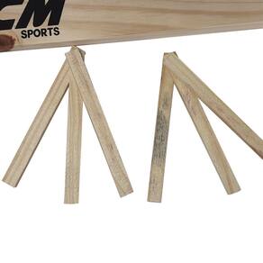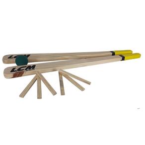 Contendo 02 tacos de madeira, 02 casinhas e 01 bolinha, você tem o kit ideal para aproveitar o lazer com a família e amigos.
