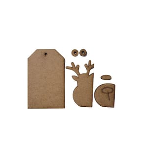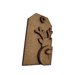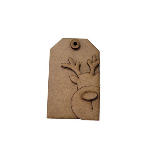 Tag com aplique de rena sobreposta em 3 camadas- em mdf cru 3mm 1un em cada pacote