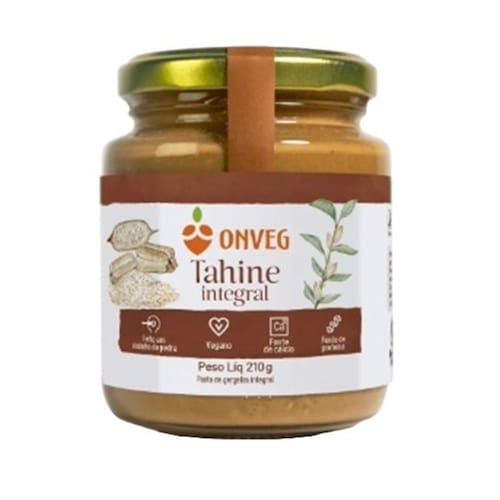 Fonte de cálcio e fibras, o tahine integral creme de gergelim onveg é um alimento muito comum no oriente, servindo de ingrediente para homus de grão bico e o babaganoush de berinjela.