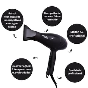 A Taiff conhece as necessidades de seus clientes e traz o potente Secador de Cabelos Taiff Black Íon.Mais potência para um ótimo resultado, além de contar com potência de 2000W e proporcionar uma secagem rápida, o secador Black Íon possui tecnologia de íons negativos.