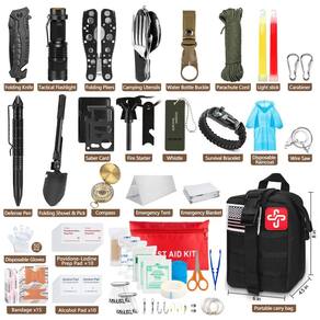 Kit de sobrevivência 152 em 1 O kit de sobrevivência de emergência Taimasi é único, pois foi projetado e curado especificamente por especialistas em sobrevivência. O abrangente sistema de sobrevivência não inclui apenas 22 peças de ferramentas de sobrevivência multiuso e uma barraca e cobertor de emergência, mas também oferece 45 peças de kit de primeiros socorros, 50 peças de luvas descartáveis e um conjunto de ferramentas de pesca que podem atender às suas diferentes necessidades e resolver o problema de procurar comida ao ar livre. Equipamentos de sobrevivência práticos para qualquer emergência Fornecendo muitas ferramentas e itens essenciais de sobrevivência populares para sobreviver no deserto ou em desastres. Uma faca e uma serra de fio de aço para cortar madeira ou osso luvas de trabalho para proteger as mãos durante a limpeza de escombros ou outras tarefas Cabo de pára quedas de 32,8 pés e tenda de emergência para ajudá lo a criar um abrigo improvisado manta térmica para reter 90 do calor corporal. Ele também vem com alicate dobrável, cartão sabre, lanterna, iniciador de fogo, bússola etc. Kit de Primeiros Socorros Básico Vem com um kit de primeiros socorros com bolsa vermelha brilhante que inclui itens essenciais, como pinças, tesouras e alfinetes, bandagens, almofada, bandagem triangular, cotonetes etc. Eles podem ajudar a impedir o agravamento do sangramento de ferimentos leves, mobilizar membros feridos e até curar feridas para prevenir infecções Marca: Não Informado