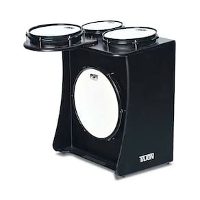 O Tajon Master une a praticidade do cajon com a possibilidade sonora semelhante a uma bateria. Bumbo com pele de 14", caixa com 10", Ton de 10" e ton de 8".