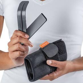 As talas internas são facilmente ajustadas para a mão desejada. São 2 talas removíveis, uma com a curvatura ideal para a sustentação do punho à palma da mão e a segunda reta na parte dorsal do punho, evitando o movimento para cima e para baixo. O elástico aderente envolve a articulação e proporciona compressão de acordo com a indicação médica e necessidade do paciente.