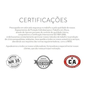 Possui 1 conector classe T confeccionado em aço com abertura de 16 3 mm e 1 mosquetão oval de trava de rosca com conector classe B confeccionado em aço com abertura de 19 3mm.