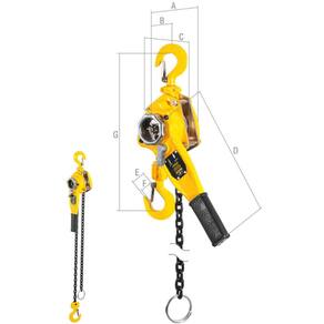 Conteúdo: 1 Talha com alavanca; Modelo: TA 375; Material da corrente: Aço de manganês (20mN2); Capacidade de carga da talha: 0,75 tonelada (0,75 tf); Diâmetro da corrente de carga (mm): 6,0mm; Elevação máxima da talha: 3,0m; Esforço necessário para elevar carga máxima (N): 250 N; Grupo de classificação: EN 13157; Medida (A): 154mm; Medida (B): 100mm; Medida (C): 134mm; Medida (D): 290mm; Medida (E): 34mm; Medida (F): 25mm; Medida (G): 310mm; Segue norma: ABNT NBR 16324; Massa aproximada (peso) (kg): 7,66kg; Garantia: 90 dias.
