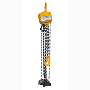 Talha manual de corrente com capacidade para 1 tonelada, ideal para içamento de materiais pesados em diferentes fases da construção civil. Compacta e resistente, garante desempenho seguro em operações que exigem maior esforço de elevação.