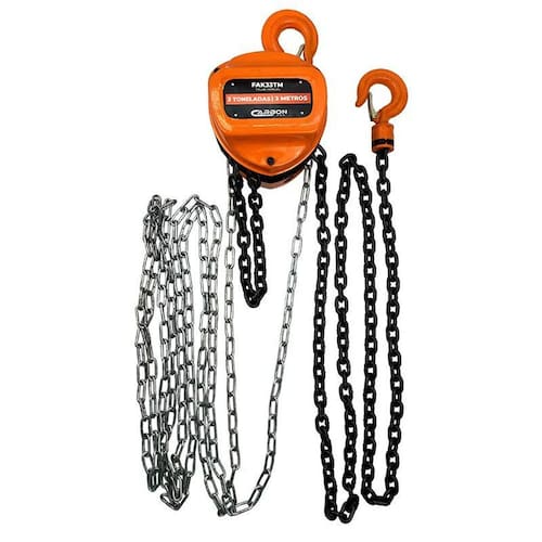 A talha manual da carbon fak fak33tm de 3 toneladas e com 3 metros de corrente pode ser usada no ramo de construção civil, indústria, oficinas mecânicas e siderúrgicas.