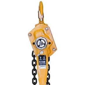 Talha Manual de Alavanca MTA 1.5ton 1500kg X 1,5m Menegotti - 40850011 Possui Estrutura de aço, com 2 ganchos em aço forjado com trava de segurança, que evita o desengate do material que está sendo corda, corrente, cinta, etc . em lugares estreitos, ar livre e lugares aéreos para o trabalho de puxar e esticar em qualquer ângulo. Eixo central em ferro fundido nodular, carenagem em chapa de aço. Polia de operação em ferro fundido, roldana guia para a corrente de carga e catraca e disco de freio para o giro sobe e reversão desce . Modelo: MTA 1.5 Capacidade de carga: 1500 kg Altura de elevação: 5 m Teste de carga: 2250 kg Força na alavanca: 21 kg No de fileiras de corrente: 1 Diâmetro da corrente: 8 mm Comprimento da alavanca: 410 mm Peso: 11 kg Imagens Meramente Ilustrativas Marca: Não Informado