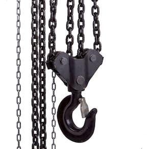 O gancho em aço forjado possui rotação de 360 e indicadores de deformação, proporcionando maior flexibilidade e facilidade de uso. Além disso, a corrente de carga no grau 80 é calibrada e temperada para máxima resistência.