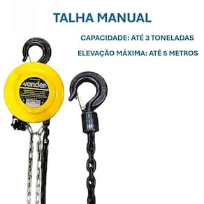 Talha Manual Vonder com Corrente e Elevação de até 5 Metros 3 Toneladas Oficina Industrial.