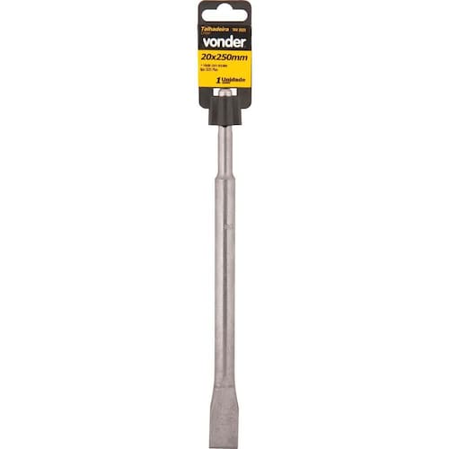 Talhadeira 20x250mm sds plus vonder - utilizada em martelete com encaixe tipo sds plus para rompimento em alvenaria, fazer rasgos em paredes e remover pisos, azulejos, entre outros - medida do corpo da talhadeira com encaixe sds plus:14,0 mm - perfil do corpo da talhadeira:redonda Marca: Vonder Código de Barras: 7893946231521 : 3 meses Aviso: Imagens Meramente Ilustrativas Número da peça: 53.74.020.250 Peso: 249 g Comprimento: 30.5 centímetros Largura: 35 milímetros Altura: 15 milímetros Dimensões do produto: 30,5 x 3,5 x 1,5 cm ; 249 g Referência do fabricante: 53.74.020.250 ASIN: B07BNGN9TY Marca: Não Informado