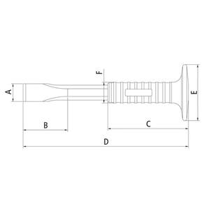 Muito utilizadas para remover rebarbas, cortar arames, cortar chapas finas e abrir sulcos em chapas metálicas planas em locais de difícil acesso, as talhadeiras podem ser utilizadas com ou sem empunhadura. A empunhadura protege as mãos, além de proporcionar melhor agarre e conforto. Quem é PRO usa. Orientações Talhadeira produzida em aço cromo vanádio.Têmpera por indução no gume de corte.Acabamento fosfatizado.Empunhadura injetada em PVC.Estas ferramentas de impacto têm dureza diferenciada no gume de corte e na face que será golpeada.As ferramentas são submetidas a testes de aplicação para garantir que o processo de fabricação esteja dentro das especificações.A camada de fosfato mais a deposição de óleo aplicado na superfície das peças garantem uma proteção excelente contra a corrosão.A variedade de tamanhos e formas de punções e talhadeiras, sempre assegura a ferramenta certa para cada aplicação.Remover rebarbas e cortar arames e chapas finas.Pode também abrir sulcos em chapas metálicas planas, em locais de difícil acesso. Proteger as mãos do usuário durante o uso da talhadeira, além disso, proporciona melhor agarre e conforto ao mesmo tempo.As ferramentas são produzidas e testadas conforme normas específicas. Observações Use óculos, luvas e outros equipamentos de proteção individual (EPIs) de acordo com a tarefa a ser executada. Utilize punções, saca-pinos e talhadeiras em superfícies ou componentes de dureza inferior a suas arestas de corte ou pontas. Descarte qualquer punção, saca-pino e talhadeira que apresente rachaduras, sinais de uso excessivo ou que tenham a face de impacto deformada. Golpeie as punções, saca-pinos e talhadeiras perpendicularmente às faces de impacto. Não use punções de centro para sacar pinos. Respeite as medidas e ângulos originais ao refazer a ponta dos punções ou gume de corte das talhadeiras. Armazene em local limpo e seco. Características Gerais EAN13 7891114094824 DUN14 17891114094821 NCM 8205.59.00 Peso Líquido 0,4800 kg. Peso Bruto 0,5230 kg. Metragem 0,002106 m³. Dimensões Embalagem (Compr. X Larg. X Alt.) 260x 90x 90 mm. Dimensão Extra A 22,0 mm. Dimensão Extra B 70,0 mm. Dimensão Extra C 115,0 mm. Dimensão Extra D 200,0 mm. Dimensão Extra E 80,0 mm. Dimensão Extra F 30,0 mm.