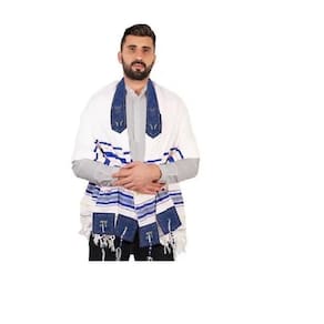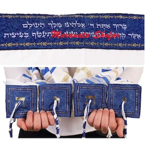 Talit ortodoxo listras azuis e douradas