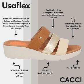 Tamanco Usaflex Facil Calce adptável ergonomicamente, reduz a pressão nos pés, com cabedal em couro relax catalano, Sistema de amortecimento em gel que se molda ao formato do pé, absorvendo o impacto e gerando uma sensação única de conforto.