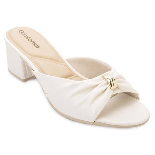O Tamanco Comfortflex CF25-2562401 é a escolha perfeita para quem busca charme, elegância e o conforto absoluto da marca! Seu cabedal em material alternativo destaca um delicado laço com detalhe dourado, trazendo feminilidade e um toque de sofisticação que transforma qualquer look. A palmilha forrada, macia e com tecnologia Comfort acolhe os pés com suavidade, proporcionando bem-estar durante o uso. O salto bloco de 6 cm com textura exclusiva garante estilo e estabilidade, ideal para quem deseja ganhar altura sem abrir mão do conforto. Completo com solado de borracha antiderrapante, este tamanco oferece segurança em cada passo. Um modelo versátil, moderno e apaixonante - perfeito para elevar sua produção com leveza e muito charme!