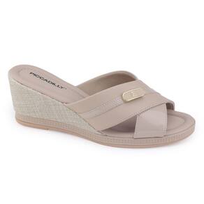 Tamanco Piccadilly 408219 é ideal para o seu dia a dia, este calçado é muito leve e confortável conta com um salto ababela médio, para calçar o dia todo. Seu cabedal é fabricado em material sintético com detalhe em texturas diferentes, é aberto no calcanhar para calçar basta colocar o pé. Sua palmilha é fixa em material sintético macio. O seu salto anabela é médio, possui 6,5cm de altura, com acabamento em trama natural, o solado apresenta frisos para maior segurança.